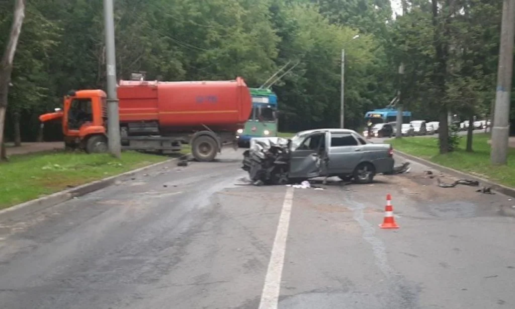 По предварительным данным, 35-летний водитель «Лады» двигался по улице Телевизионной со стороны Социалистической и в районе дома №1 выехал на встречную полосу, где врезался в КамАЗ.