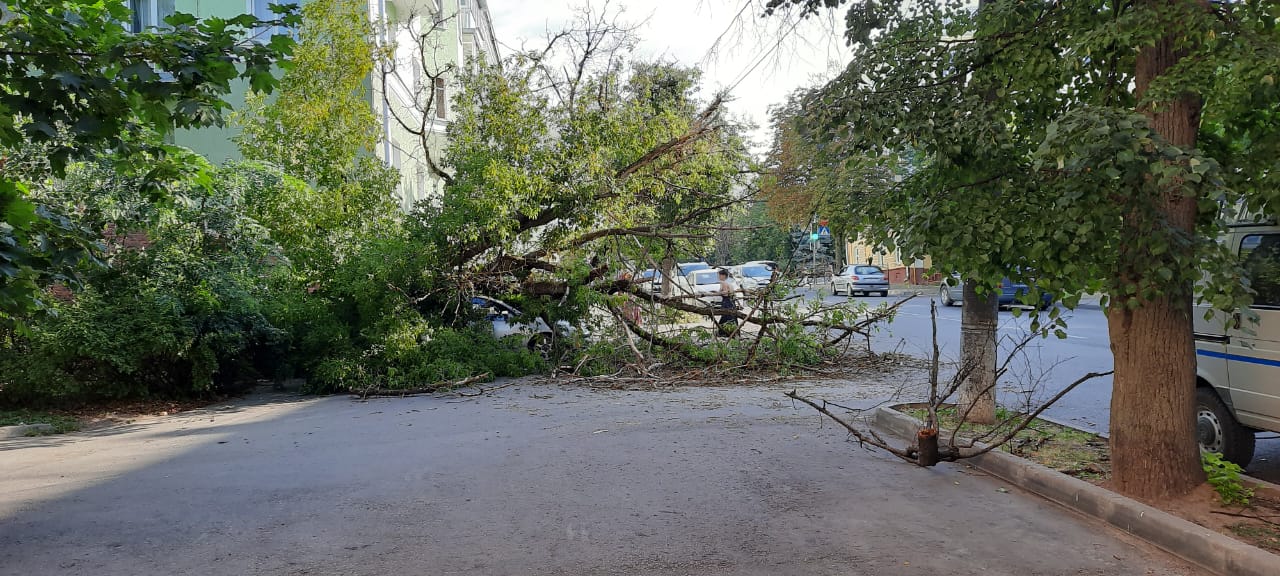 В понедельник вечером, 22 августа, в Калуге на улице Плеханова у дома № 80 на автомобиль «Фольксваген» упало дерево.