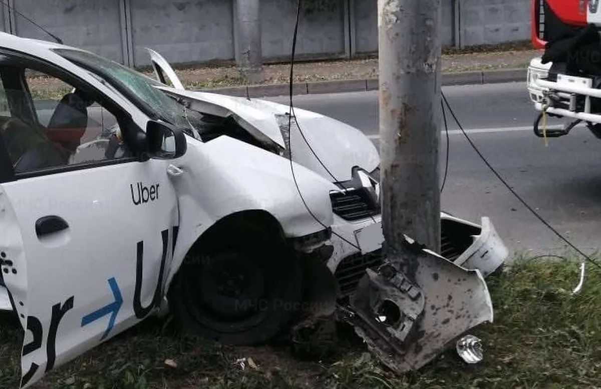 По предварительным данным, в районе Сосновой рощи таксист на «Рено Логан» не справился с управлением, съехал с дороги и врезался в столб.