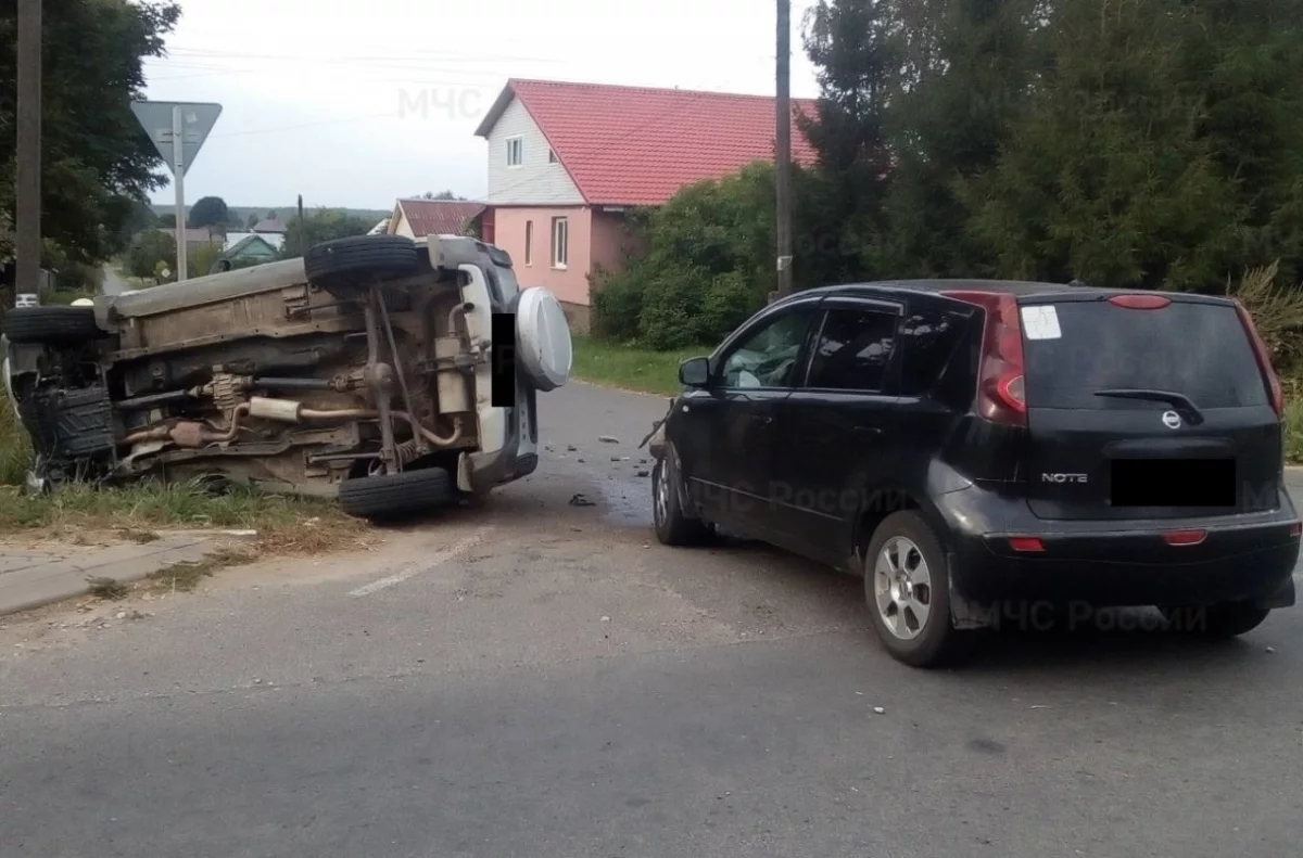В Калужской области «Нива» перевернулась после столкновения с «Ниссаном»