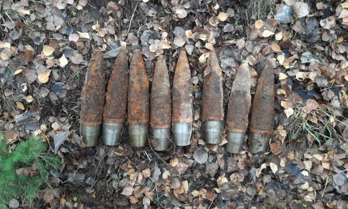 Восемь артиллерийских снарядов лежали в лесу в двух километрах от деревни Каменка.