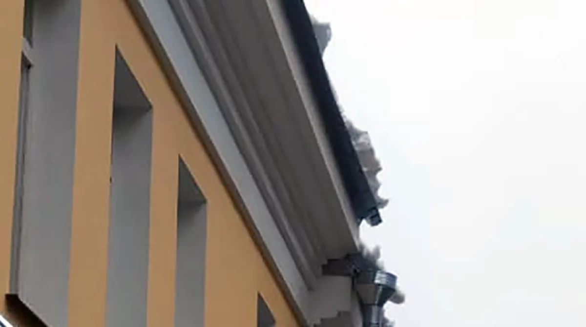 После снегопада и ледяного дождя в Калуге 22 ноября установилась плюсовая температура. Из-за этого с крыш начал падать лед, который успел там образоваться.