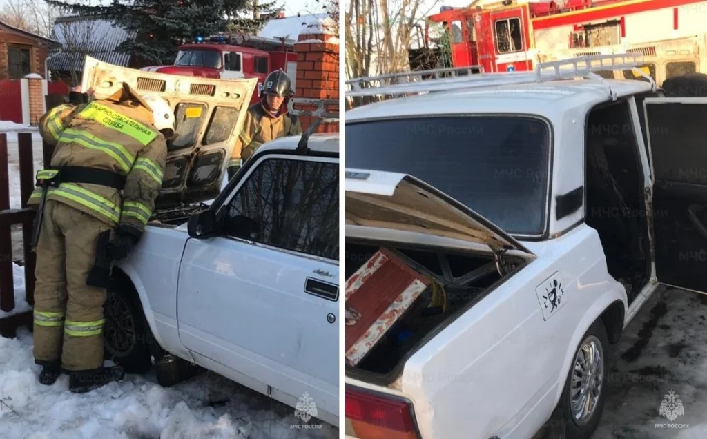 Около 14:00 в понедельник, 5 декабря, в селе Росва на окраине Калуги загорелся автомобиль «Жигули». Фото с места происшествия опубликовали в ГУ МЧС по Калужской области.