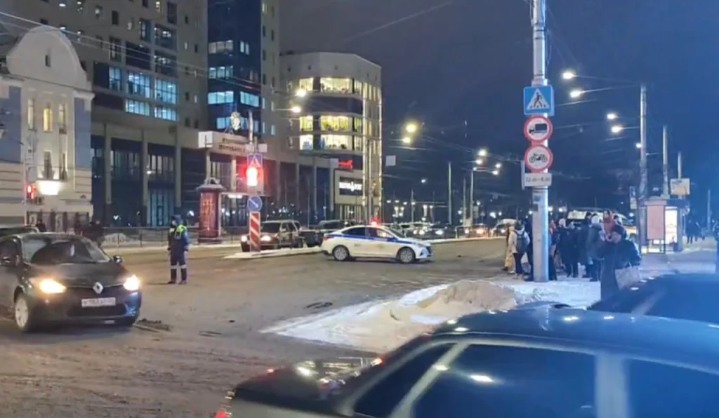 Весь поток автомобилей со стороны Театральной площади перенаправляют на улицу Плеханова. Территория вокруг остановки оцеплена, пешеходов просят перейти улицу или пройти через торговый центр.
