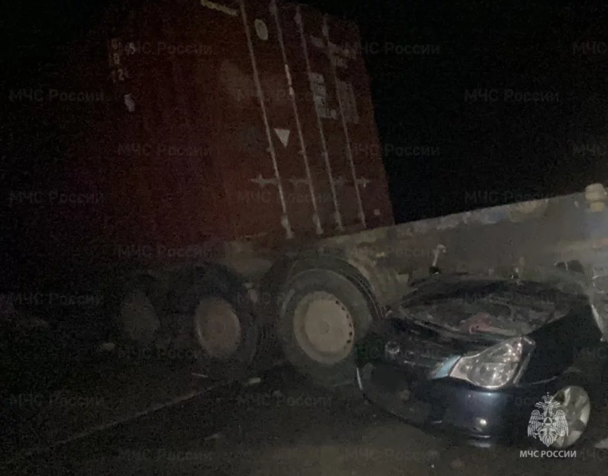 Легковушка частично оказалась под прицепом фуры.