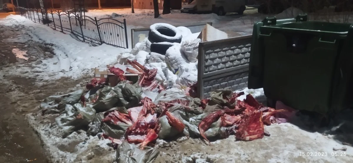Ранее в соцсетях встречалась информация, что в эти же контейнеры выбросили голову коровы. Данные биологические отходы запрещено выбрасывать вместе с бытовым мусором. Заведения общественного питания должны их утилизировать по установленной процедуре.