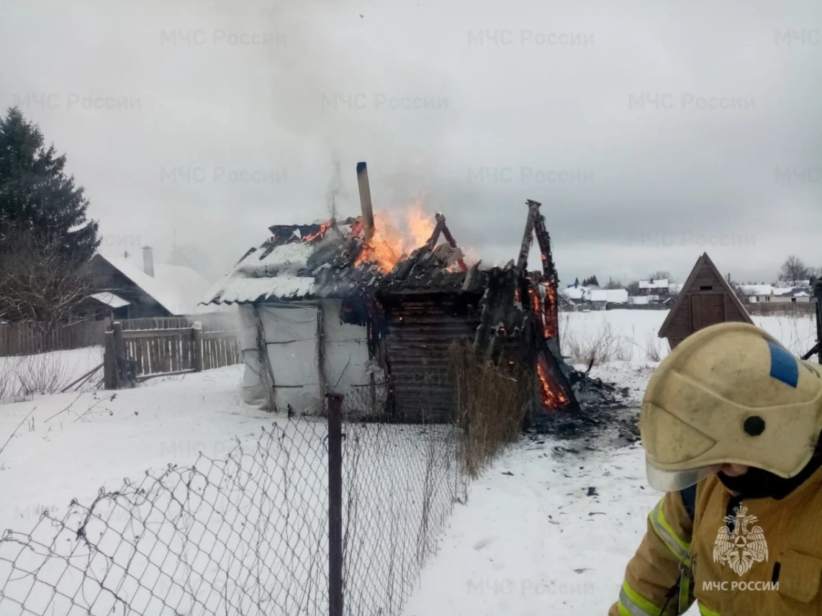 Около 13:30 баня возле частного дома загорелась в деревне Карцово на улице Садовой.
