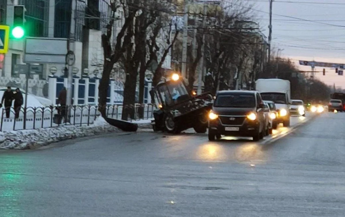 Утром в четверг, 9 марта, на улице Ленина в Калуге у здания Центробанка у трактора оторвалось колесо. Фото опубликовали в сообществе «Дорожный патруль».