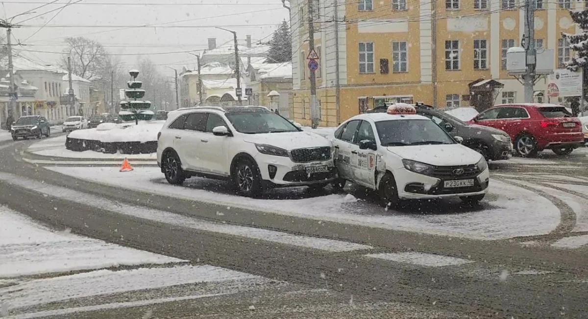 Днем в четверг, 9 марта, на перекрестке улиц Пушкина, Королева и Баумана в Калуге во время снегопада произошло ДТП.