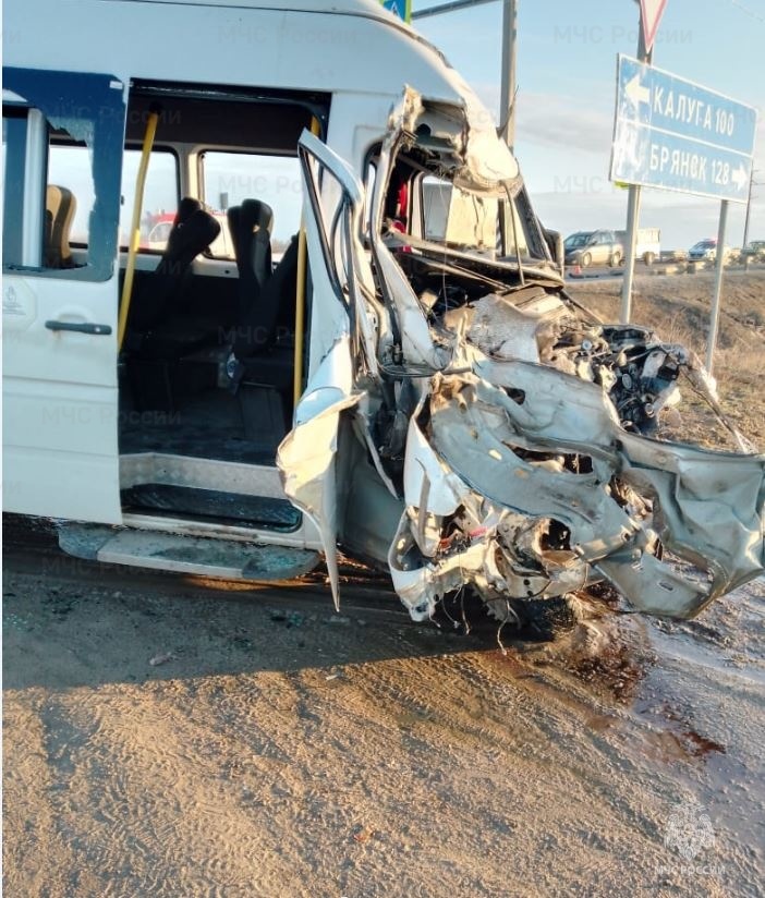 По предварительным данным, в аварии пострадали водитель микроавтобуса и пять его пассажиров. В УМВД по Калужской области сообщили, что водитель микроавтобуса выезжал с прилегающей территории и не уступил дорогу большегрузу. Точные обстоятельства устанавливаются.