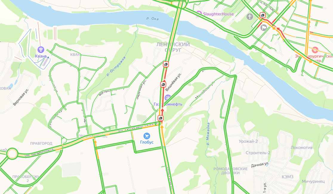 Утром в четверг, 23 марта, в Калуге образовалась пробка на участке Тульского шоссе между улицей Генерала Попова и Гагаринским мостом.