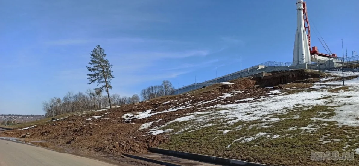 После потепления склон у музея космонавтики в Калуге продолжил движение в сторону Яченского водохранилища.