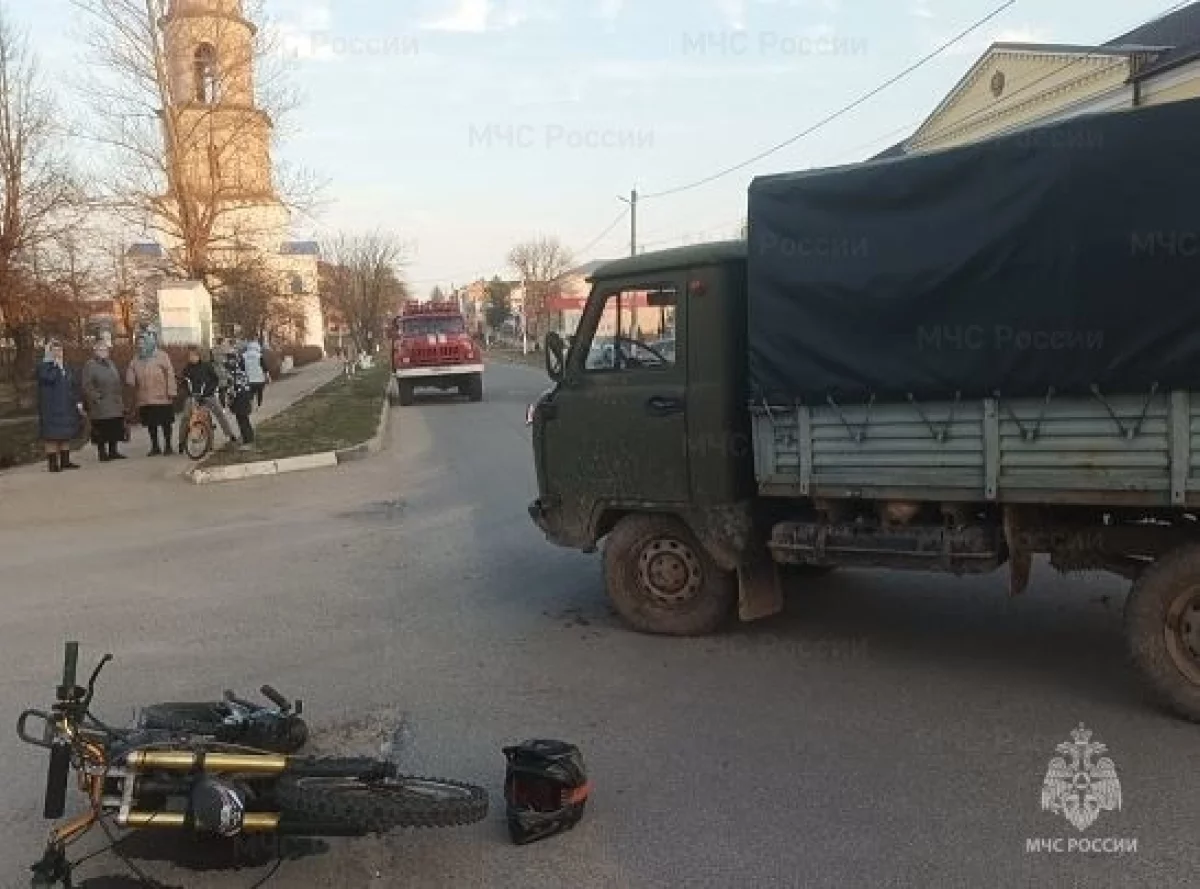 В субботу, 8 апреля, около 18:00 на проспекте Революции в Мещовске мотоцикл столкнулся с грузовым автомобилем «УАЗ». Об этом сообщили в ГУ МЧС по Калужской области.