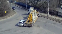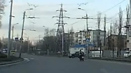 Избежав столкновения, водитель «Урала» вылетел на тротуар.