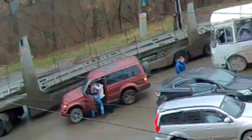 Легковушка врезалась в припаркованный грузовик на улице Жукова.