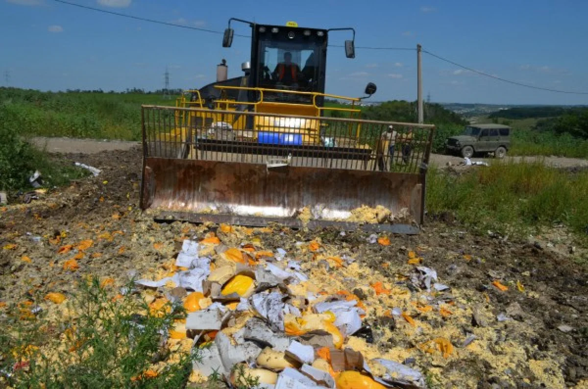 В четверг, 6 августа, вступил в силу указ президента об уничтожении продуктов, привезённых в нашу страну из стран, на которые российское правительство наложило санкции. По всей стране начали давить бульдозерами элитный сыр (на фото), закапывать яблоки и сжигать персики. За сутки уничтожено 290 тонн еды.