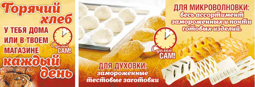 Как видите, свежий хлеб каждый день в вашем магазине или у вас дома — это реально! И все, что для этого нужно, — духовка или микроволновка. Например, очень удобно брать замороженный хлеб в нарезке: достал кусочек, положил в микроволновку — и через 15 секунд у тебя на столе горячий и ароматный порционный хлеб!