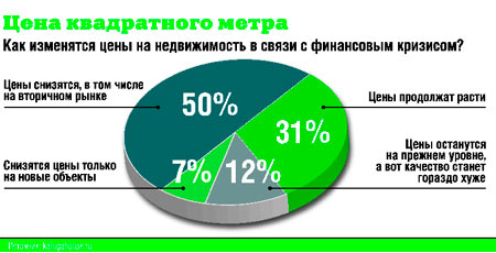 Директор по маркетингу и продажам ООО «Квартал Эстейт» Сергей Лушкин также считает, что потенциальные покупатели отложили приобретение квартиры, ожидая прояснения ситуации на рынке. Однако прогнозируемое многими аналитиками резкое снижение стоимости квадратного метра так и не произошло. Лишь некоторые компании объявили о существенном дисконте на свои объекты, другие же девелоперы предпочли приостановить деятельность до лучших времен и объявили о замораживании перспективных проектов, сконцентрировавшись на реализации текущих объектов.