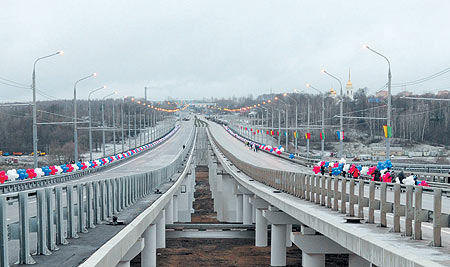 Уникальность нового мостового комплекса заключается в том, что он был построен в рекордно короткие сроки. Как сказал губернатор Анатолий Артамонов, строители работали без единого выходного — не было ни часа перерыва в работе в течение двух с лишним лет. В строительство объекта вложено более 3 млрд рублей. Кстати, для обеспечения безопасности пешеходов рядом с мостом в мае этого года был сдан в эксплуатацию и первый в городе подземный переход через улицу Гагарина.