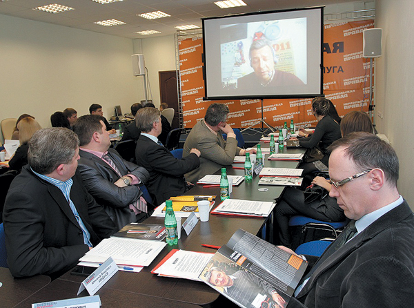 В начале встречи была организована видеосвязь по Skype с шеф-редактором федерального «Бизнес-журнала» Денисом Викторовым, который приветствовал участников редсовета из Москвы. Он немного позавидовал Калуге и был поражен количеству гостей из предпринимательских кругов.