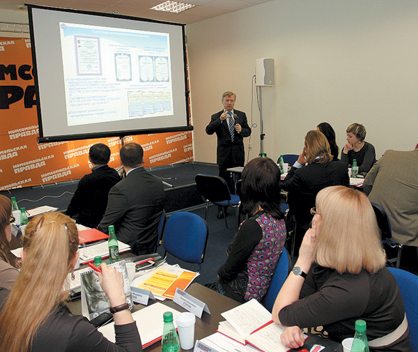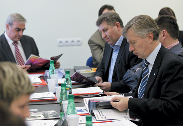 В ходе заседания состоялось вручение сертификатов новым членам редакционного совета — генеральному директору ОАО «ОНПП «Технология» Олегу Комиссару, директору ЗАО «Калуга Астрал» Игорю Чернину, директору Калужского филиала ОАО «ВымпелКом» Ольге Маркиной и генеральному директору ООО Центр профессионального перевода «Алеан» Оксане Сторчак, а также презентации компаний.