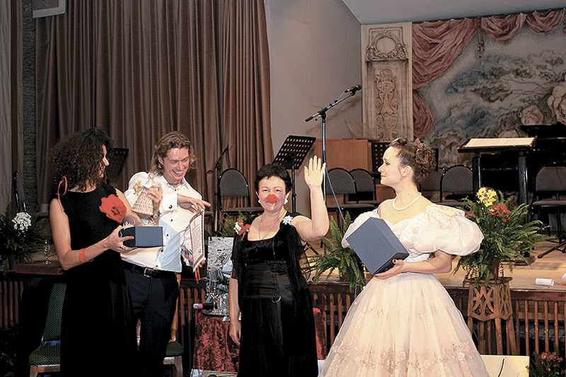 Открылся вечер музыкально-театрализованным представлением в духе калужских купеческих балов — с танцами, жестоким романсом и парижским шансоном (Ги Леже), поздравлениями, любовным сюжетом и настоящей дуэлью.