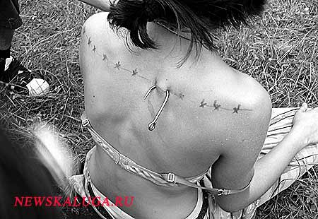 — После подвешивания необходимо сделать такой массаж, чтобы из спины вышел весь лишний воздух. Кстати, он является самой кровавой частью. Если такой массаж не сделать, то на теле могут остаться синяки и болеть будет сильно и долго.