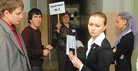 В школу ребят запускали группами по спискам, проверяли паспорта — и сразу вели в аудиторию, никакого произвольного брожения по коридорам не было.