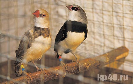 Амадины — родственники воробьев. Дома у Евгения Львовича прекрасно себя чувствуют разные виды амадин: острохвостые, бриллиантовые, японские, зебровые. В природе их родина — Австралия, всех, кроме японских амадин (они чисто домашние и на воле не встречаются). Кстати, японские амадины — универсальная нянька: они выкармливают любой вид амадин.