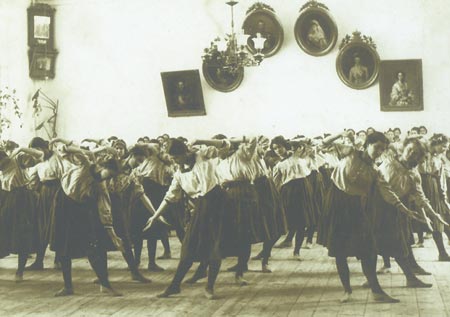 На уроках в женских гимназиях калужанки обучались ведению домашнего хозяйства, шитью, танцам и пению.