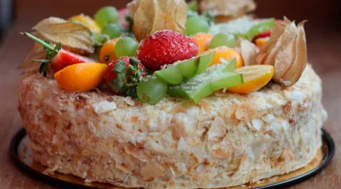 - Посыпать какао-порошком. Украсить шоколадной стружкой, свежей клубникой (по желанию) и убрать в холодильник на ночь.