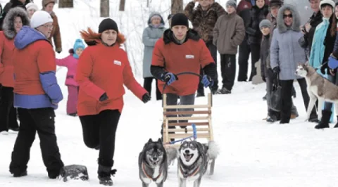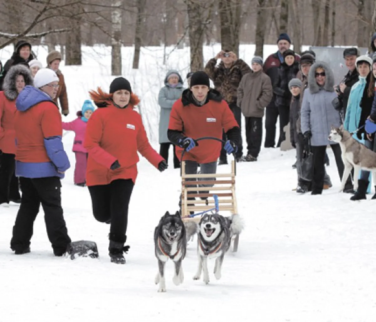 В последний день марта в Сосновой роще проходили гонки на собачьих упряжках.