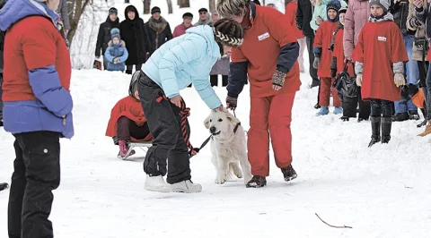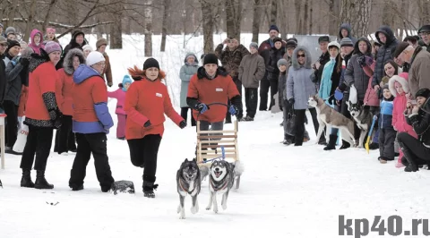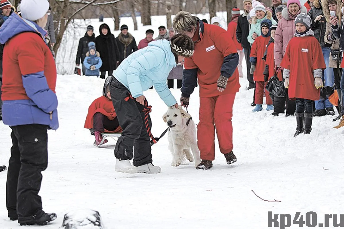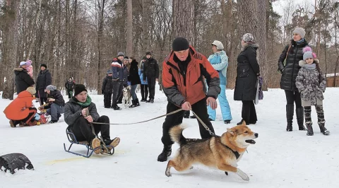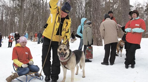 Подобные веселые соревнования проходили в Калуге во второй раз. В прошлом году участников было маловато, а в этом и собак всех пород, и зрителей собралось в роще предостаточно. Главным критерием отбора участников стал не ездовой опыт, как это принято в суровых северных краях, а наличие четвероногого друга любой породы, желание, хорошее настроение и отменное здоровье. Несмотря на то что в воздухе наконец-то повеяло весной и в городе по асфальту потекли ручьи, снег в роще, защищенный соснами, совсем не таял.