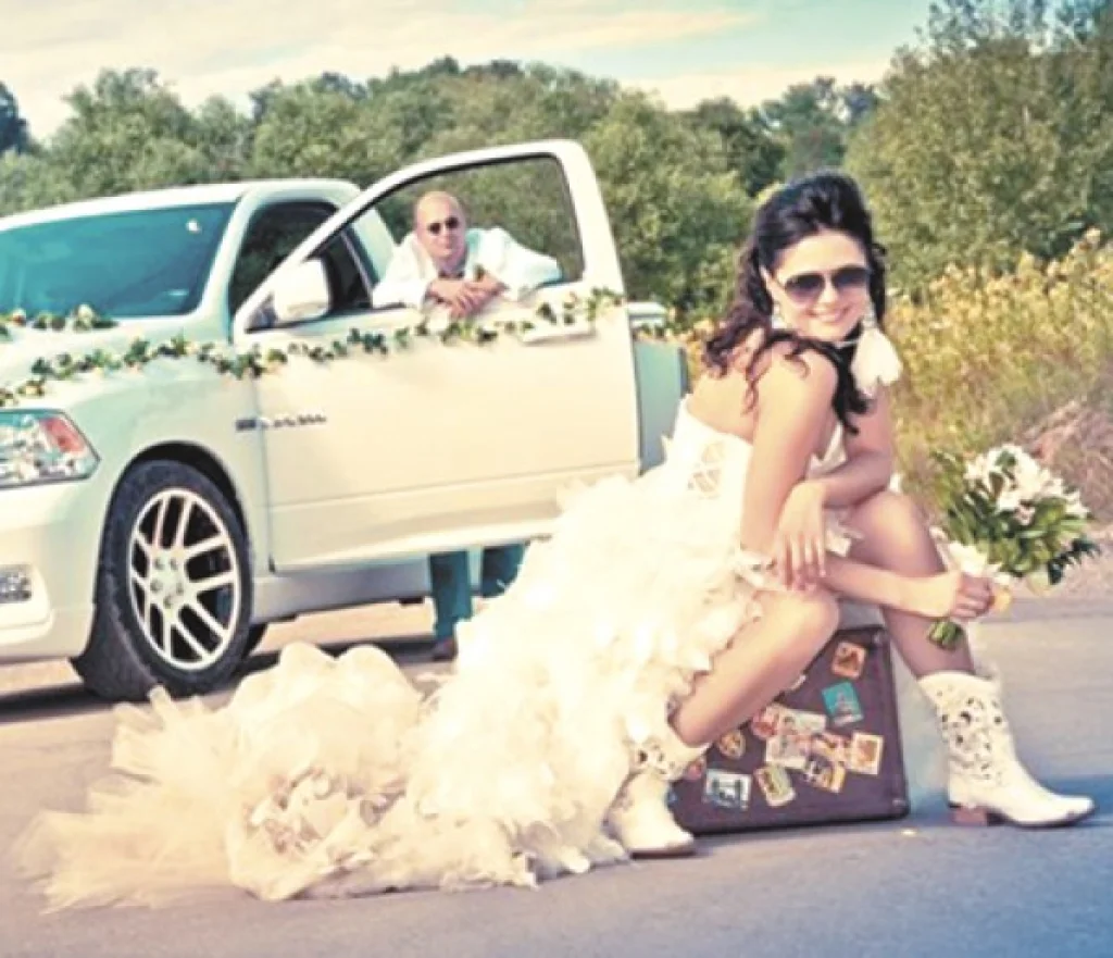 На свадьбу пригласили 60 человек. Гостей предупредили: строгий дресс-код — шляпы, джинсы, платья в стиле кантри, пистолеты и ружья… Всем, кстати, это понравилось. Даже моя мама надела джинсовый сарафан и длинные серьги. А в загсе к жениху меня вел папа, тоже по-ковбойски — в джинсах, клетчатой рубашке, шляпе…