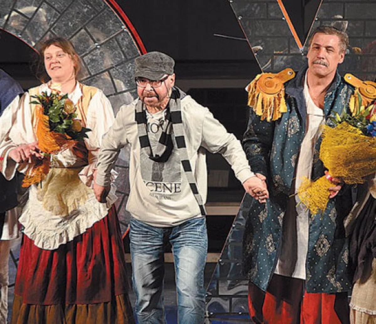 А и во граде Туле не токмо металлические фабрики и мыльно-пильные заводы, а и актеры подходящие имеются. Взять хотя артиста истинно народного Бориса Заволокина да артиста у народа заслуженного Геннадия Вершинина в ролях тульских оружейников — мужики, видать, основательные, справные. А вот Игорь Лучихин — какой казак Платов! Лихой, шумный, очень его много на сцене. Или взять Алексея Соловьева в роли царя: с таким скусом представляет, так публикой вертит! А публика что ж — хохочет себе в удовольствие, ажно подвизгивает! А и нет в спектакле энтом ролей незаметных. Скажем, Юрий Мельников в роли скорохода. Мужчина он видный, росту возвышенного, а так потешно ножонками своими длинными вывертывает, что тут тебе и спасибо от зрителя. А Мария Соловьева — аглицкая девка Меря — как пошла в стриптизе разоблачаться, тут уж зритель просто пардону запросил.