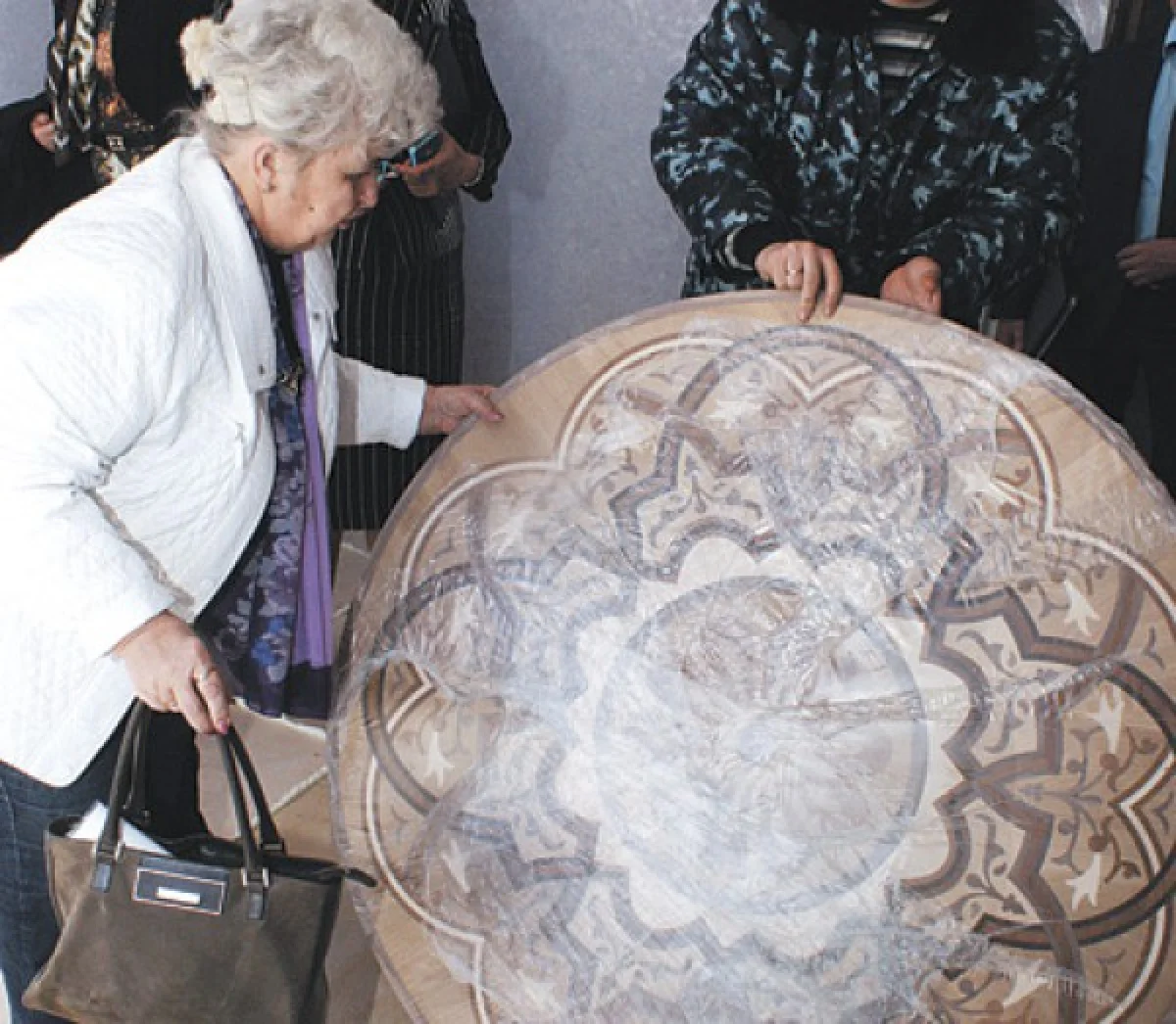 80 миллионов — столько стоила реставрация Дворца бракосочетания. Откуда такая огромная сумма, становится ясно, когда попадаешь внутрь еще не до конца отделанного здания. На стенах — фрески и венецианская штукатурка. На полу — наборный паркет. Из десятка сортов дерева изготовили две розетки, которые потом уложат в двух залах для бракосочетаний. Стоит каждая 180 тысяч. На окнах — рамы из натурального дуба и медные ручки.