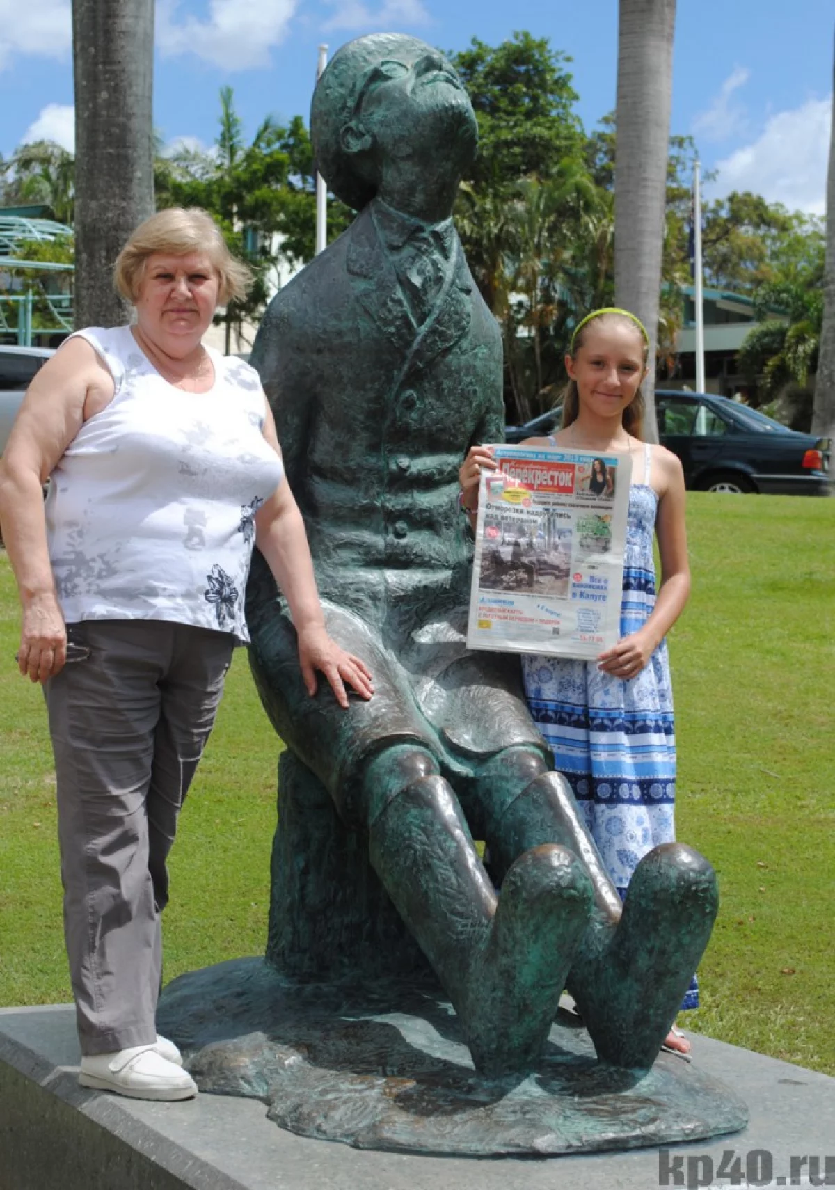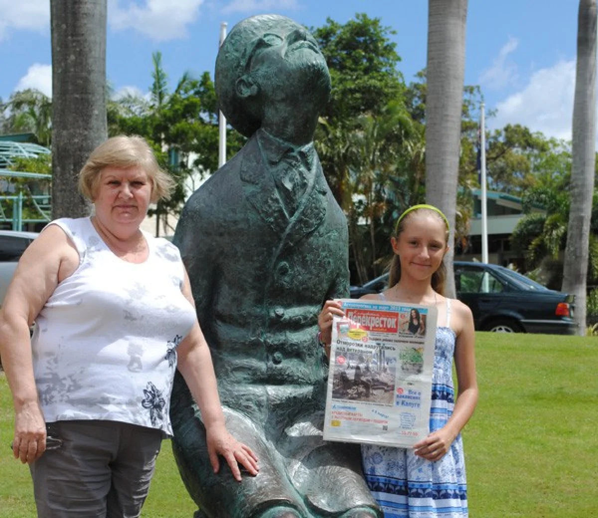 — Самое интересное, что рядом с домом, где живут мои дети, есть парк, в котором находится планетарий. Сын позвал прогуляться туда. Мы пошли. Везде очень красиво. И вдруг я вижу… Циолковского! Присмотрелась — точно! Сбегала за «Калужским перекрестком», попросила сына нас сфотографировать. Вокруг стали собираться люди, спрашивать, что мы делаем. Сын им объясняет, что это — великий русский ученый. Подошли англичане, удивились: «Что это за обувь?» А это — валенки! Иностранцы, конечно, такого не видели. Пришлось рассказать, что у нас холодно и зимой раньше носили такую обувь. Так волнительно было! Кстати, точно такой же памятник стоит в Боровске (их было 2, один подарен Австралии).