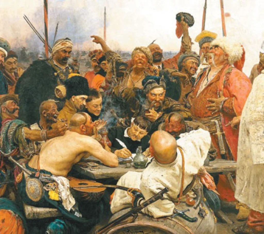 Иллюстрация: репродукция картины Ильи Репина «Запорожцы пишут письмо турецкому.