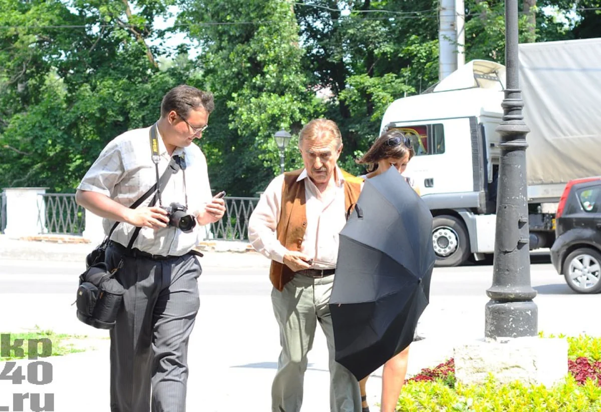 Случайно проходившая мимо калужанка лет 55, увидев легендарного актера, радостно всплеснула руками: