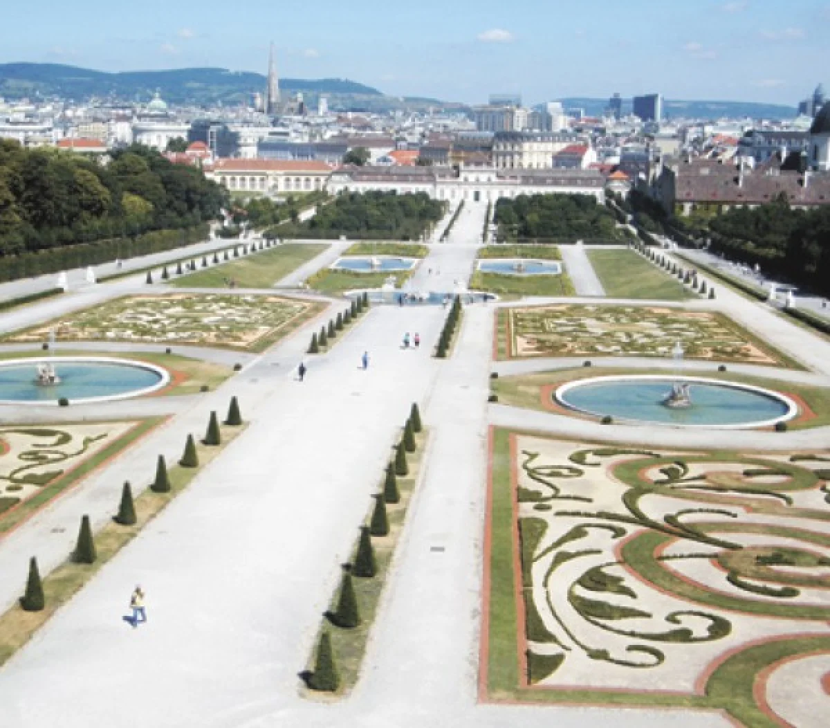 Сад в стиле барокко. Вид из окна Верхнего Бельведера на сад и Нижний Бельведер.