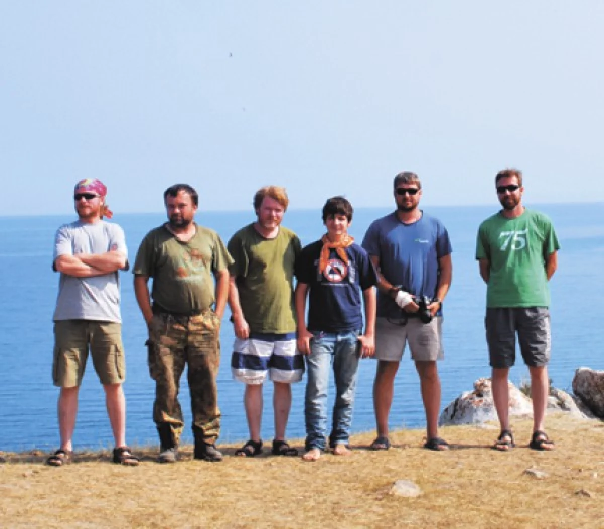 Калужские путешественники — на фоне Байкала. Слева направо: Алексей Выдренков,