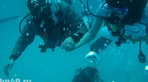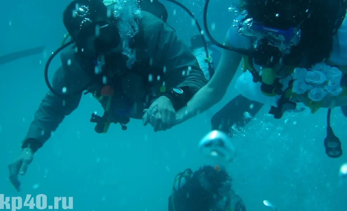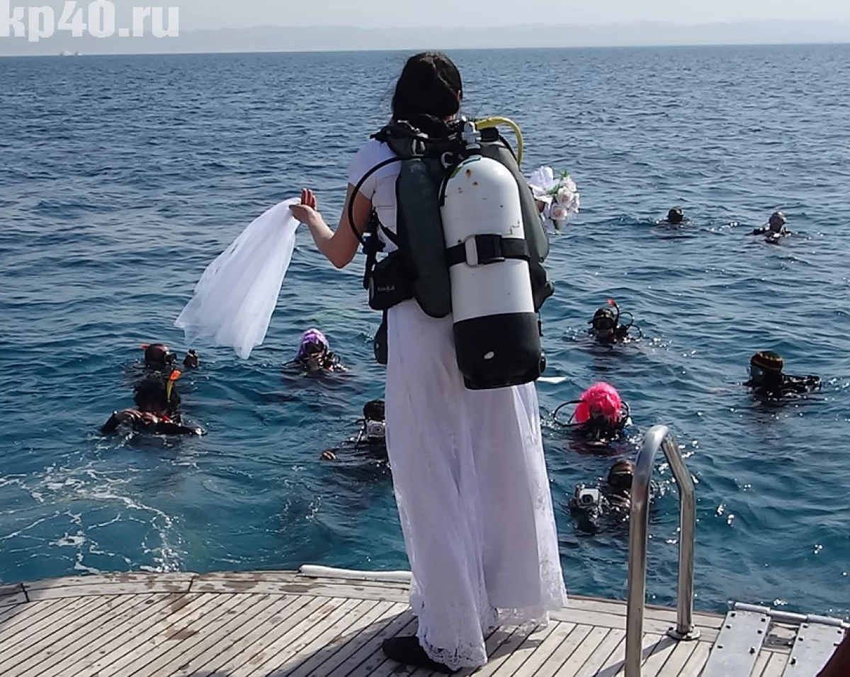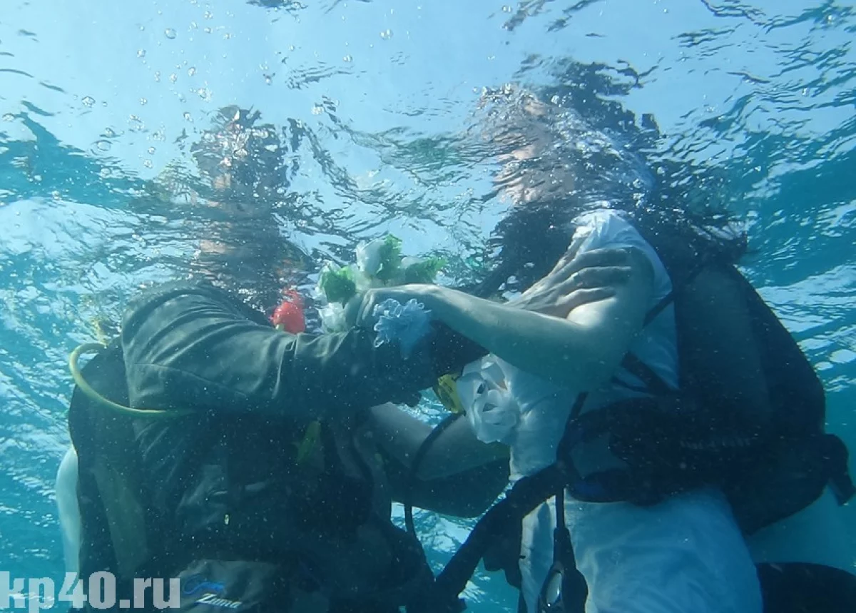 Торжество состоялось на Красном море, в Египте, но в «Калужском подводном загсе». Владислав и Анна КОЗЛОВЫ перед традиционной официальной церемонией решили провести подводное бракосочетание.