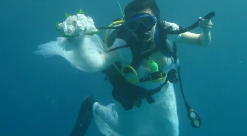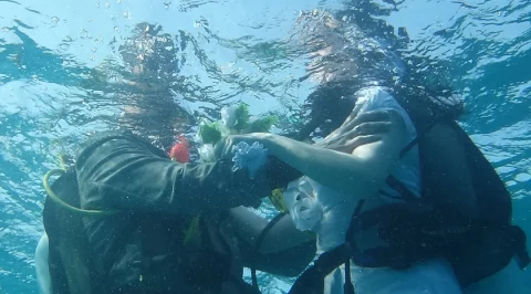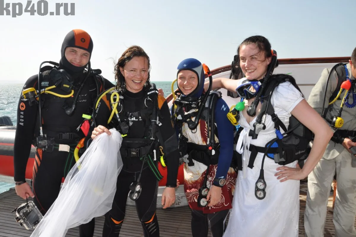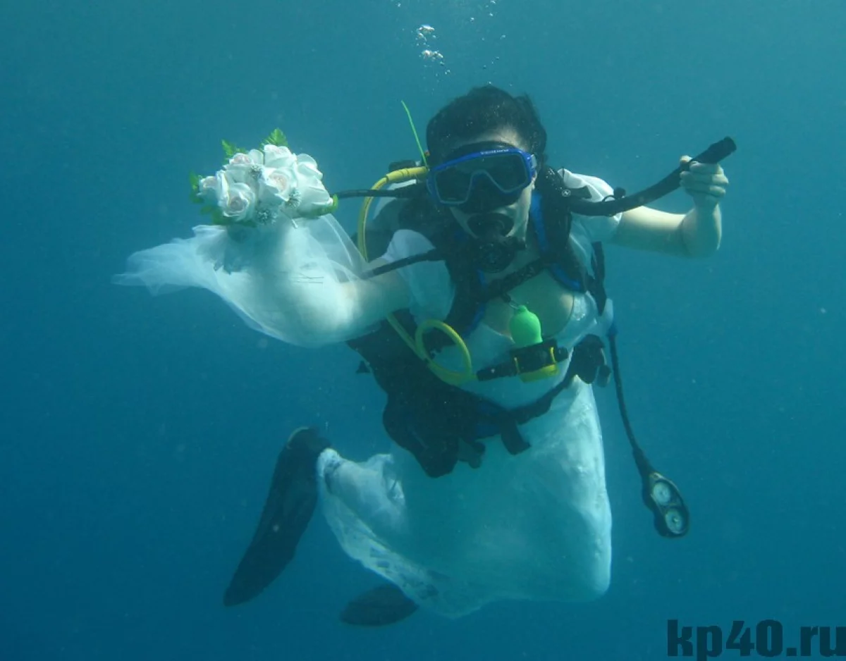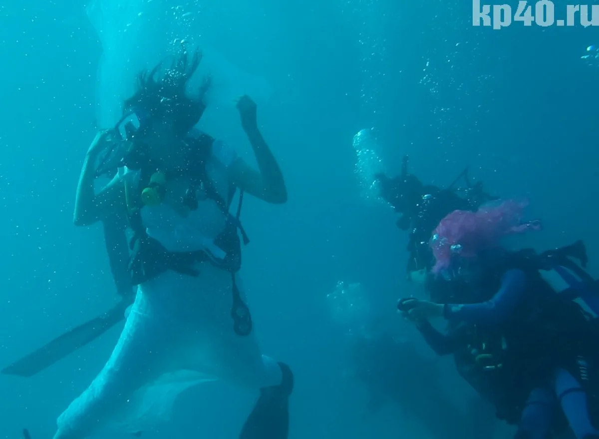 Торжество состоялось на Красном море, в Египте, но в «Калужском подводном загсе». Владислав и Анна КОЗЛОВЫ перед традиционной официальной церемонией решили провести подводное бракосочетание.