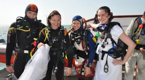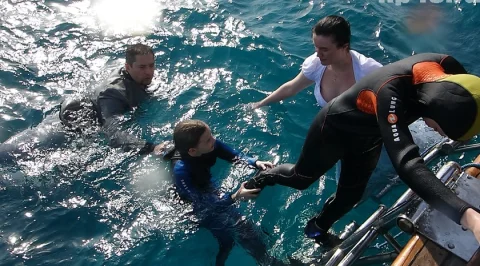 — Калужский подводный клуб обучает дайвингу уже более 5 лет, — рассказывает Анна. — Его организовали Анатолий Наталенко и Алексей Жулега — стафф-инструкторы PADI. Четыре года назад, 14 февраля, друзья пригласили меня на праздник, на подледное погружение, которое калужские дайверы устроили по случаю Дня святого Валентина. Во Льва-Толстовском карьере в виде сердца вырубили майну (прорубь), а берег почти художественно украсили глыбами льда. Я на тот момент была просто «сочувствующим» (в дайвинге всех людей подразделяют на тех, кто ныряет, и тех, кто сочувствует). Нырять я не умела из-за страха перед неизвестностью и глубиной. Однако, проникшись дружелюбной и веселой атмосферой, в каком-то душевном порыве вдруг сказала Анатолию Наталенко: «Берете новичков?» Он кивнул: «Приходи завтра!» Слово не воробей… На следующий день я набралась смелости и пришла в бассейн, где проходили занятия дайвингом. Первое погружение было трудным — я совершенно ничего не умела, а надо было научиться управлять оборудованием и плавучестью. Но с каждым новым занятием осваивала дайверские секреты, становилось все легче. После курса в бассейне подводный клуб позвал меня в Египет. Здесь, на глубине Красного моря, открылся огромный мир, настоящая сокровищница! Замысловатые морские обитатели, растения, коралловые рифы невероятных оттенков — от нежно-бежевого до темно-фиолетового… Захватило так, что не отпускает до сих пор! Я уже не могла жить без подводных погружений, даже шутила, что замуж выйду только за аквалангиста. И однажды познакомилась с Владом: искала для клуба через Интернет дайверов для очередной поездки на Красное море, и он откликнулся. Калужский подводный клуб с радостью принял его в свою команду. Мы стали вместе путешествовать, погружаться с аквалангом не только за границей, но и в нашей средней полосе — в Твери, на Валдае, в Подмосковье и Калужской области.