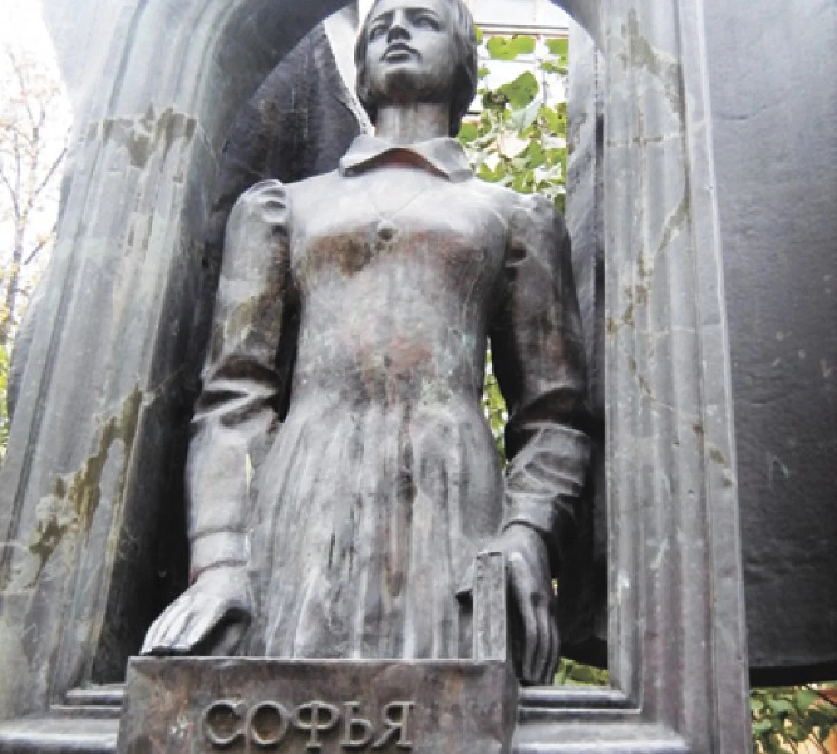 - Потрескавшийся от времени памятник Софьи Перовской в Калуге по роковому совпадению установлен напротив бывшей Воскресенской церкви. В 1930-е годы храм снесли, как и памятную часовню царю-мученику Александру II.