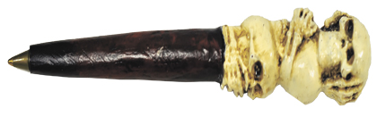 ![]() Динозавр — Ручка, которая очень понравилась нашим корректорам. Она умеет рычать. «Нам такую надо! — стали просить они. — Чтобы отпугивать журналистов, которые «очень вовремя» приходят с просьбой проверить их материалы». | ![]() Три скелета — Немецкая ручка. Подарила ее подруга, живущая в Германии. Ручка — символичная. Это аналог трех обезьян: «ничего не вижу, ничего не слышу, ничего никому не скажу». Только в скелетном исполнении. |