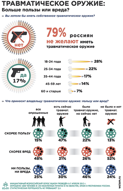 Десятки несчастных случаев, кажется, должны убедить многих отказаться от использования травматики, однако статистика говорит об обратном: количество приобретаемых стволов постоянно увеличивается. Чтобы избежать нецелевого использования травматического оружия, в некоторых регионах его владельцы проходят обучение и инструктаж. После таких курсов многие граждане отказываются от покупки пистолетов, даже как оружия самозащиты.