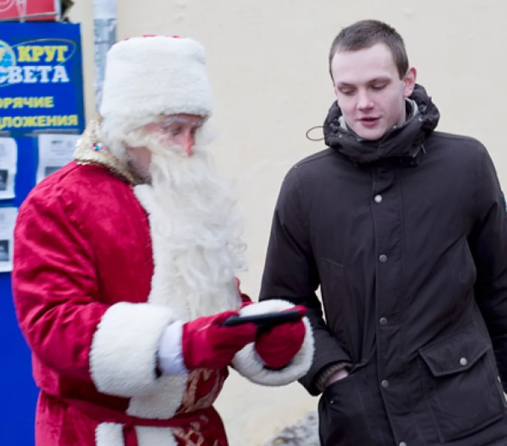 с, казалось бы, незнакомым человеком в костюме, даже на самых хмурых лицах вспыхивала улыбка. Наш Дед занял позицию и стал недоуменно тыкать в свой телефон — якобы Снегурочка оставила, а как пользоваться — не рассказала. К Деду тут же стали подходить гуляющие неподалеку с колясками мамы, кто-то пытался помочь, кто-то снимал Деда на телефон, чтобы потом показать ребенку, дескать, вот он, существует.