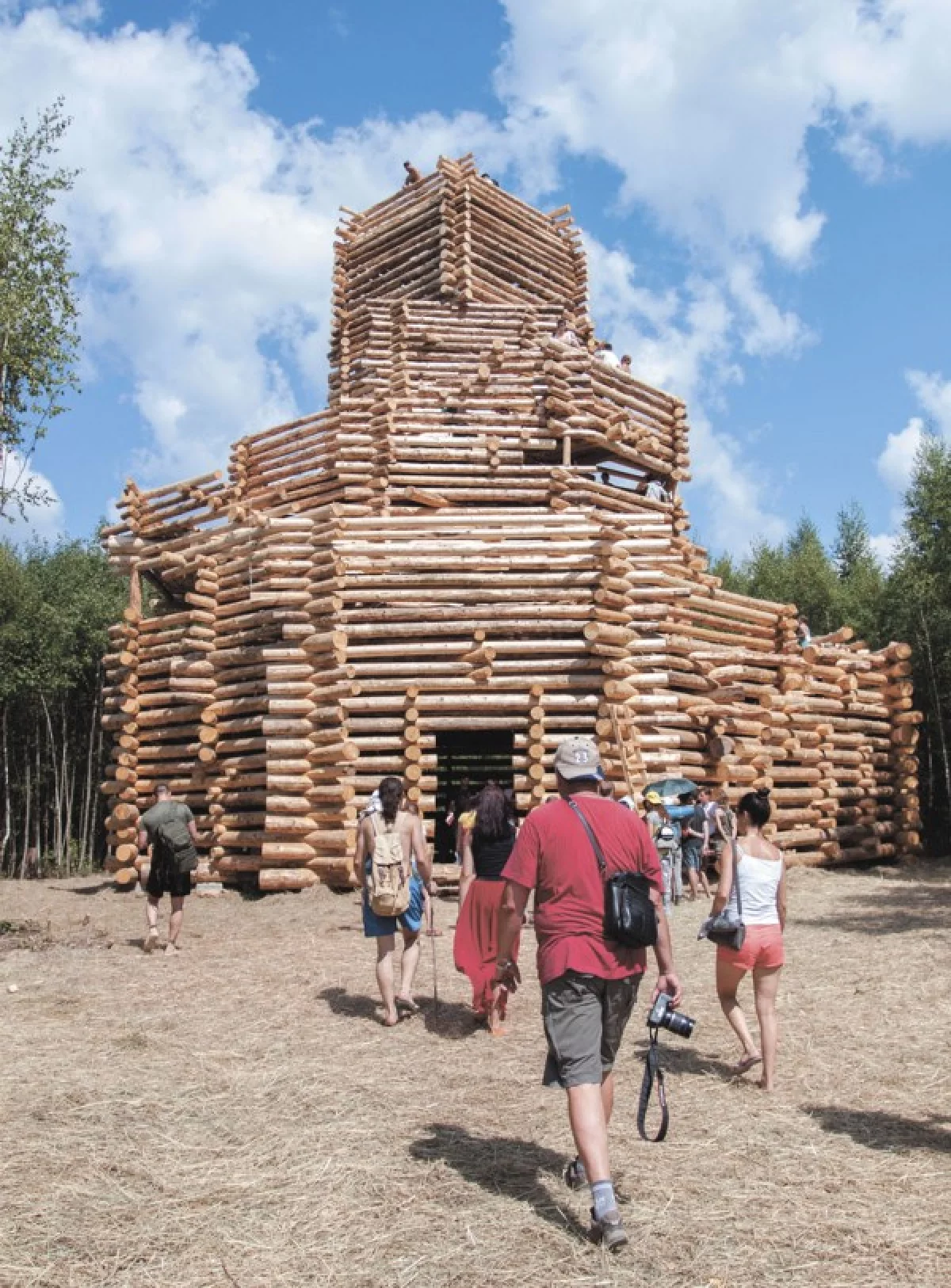 Один из самых знаменательных — «Ленивый зиккурат», звуковая скульптура Сергея Касича. Деревянное сооружение едва закончили к фестивалю. Волшебный запах только что спиленного дерева, опилки и звуки, как в советских сказках в момент, когда герой заходит в самую чащу леса, настраивают на волшебные предчувствия. В центре зиккурата отдыхали, медитировали, просто внимали странным звукам.