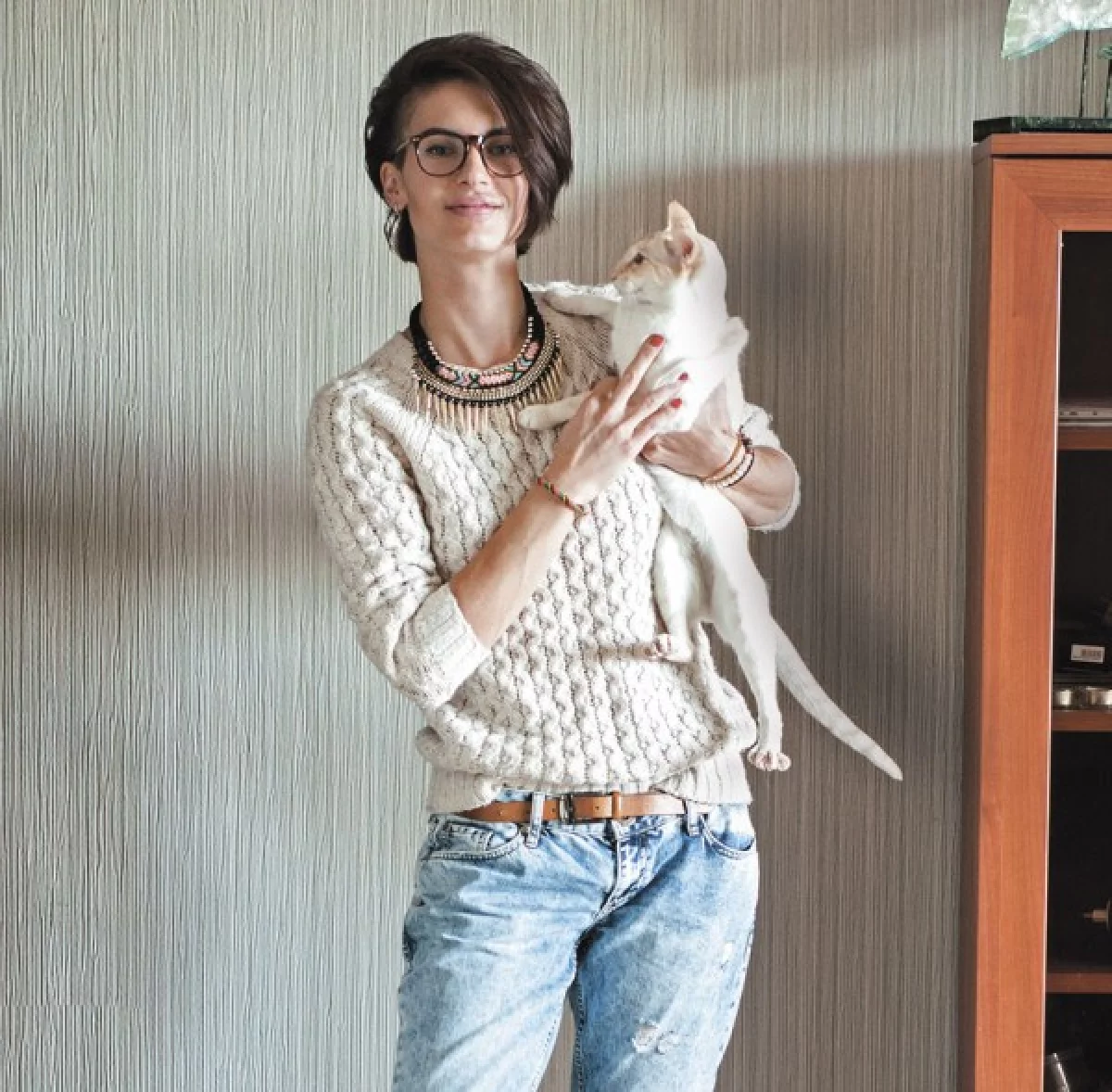 Было 10 утра, когда имидж-стилист Ольга Чистова встретила нас на пороге своего дома — в свободных рваных джинсах, шерстяном свитере и колье. По поводу халатиков и тренировочных штанов у Оли своя теория.